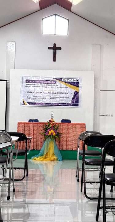 18 Kamar Unit St. Yosef Frainademetz. Kamar mandi / WC umum dan air panas. Untuk berdua dan bertiga (double / triple) - untuk melayani 36-54 orang.